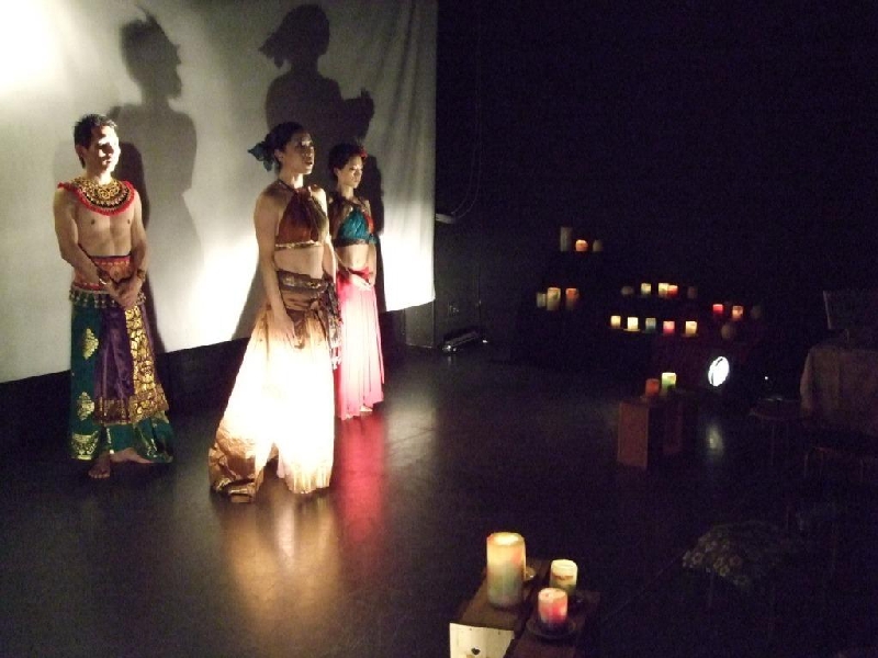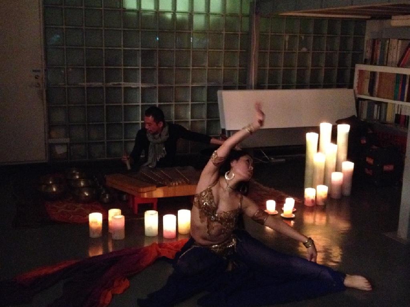 ベリーダンサーの愛さん、パーカショニストの長屋和哉さんとのコラボイベントです。幻想的な音楽に合わせたダンスとキャンドルで、素敵な空間ができたと思います。 (2013.12)